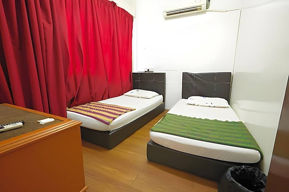 Deluxe two single bed with Shared Bathroom is 215 square feet and includes 2 single beds 80-130 width plus desk.